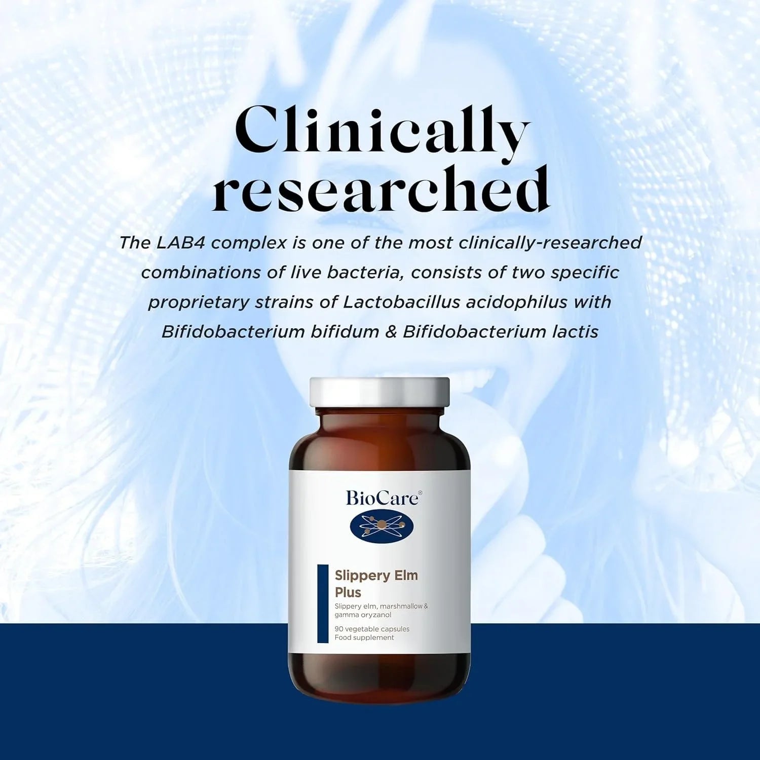 Slippery Elm Intensive 90g - Biocare is a health supplement beneficial for the digestive system. The product incorporates ingredients like slippery elm powder, marshmallow root extract, and aloe vera concentrate in a compound known as Marigold flower. This combination of components aids in maintaining digestive health and soothing the lining of the gastrointestinal tract.