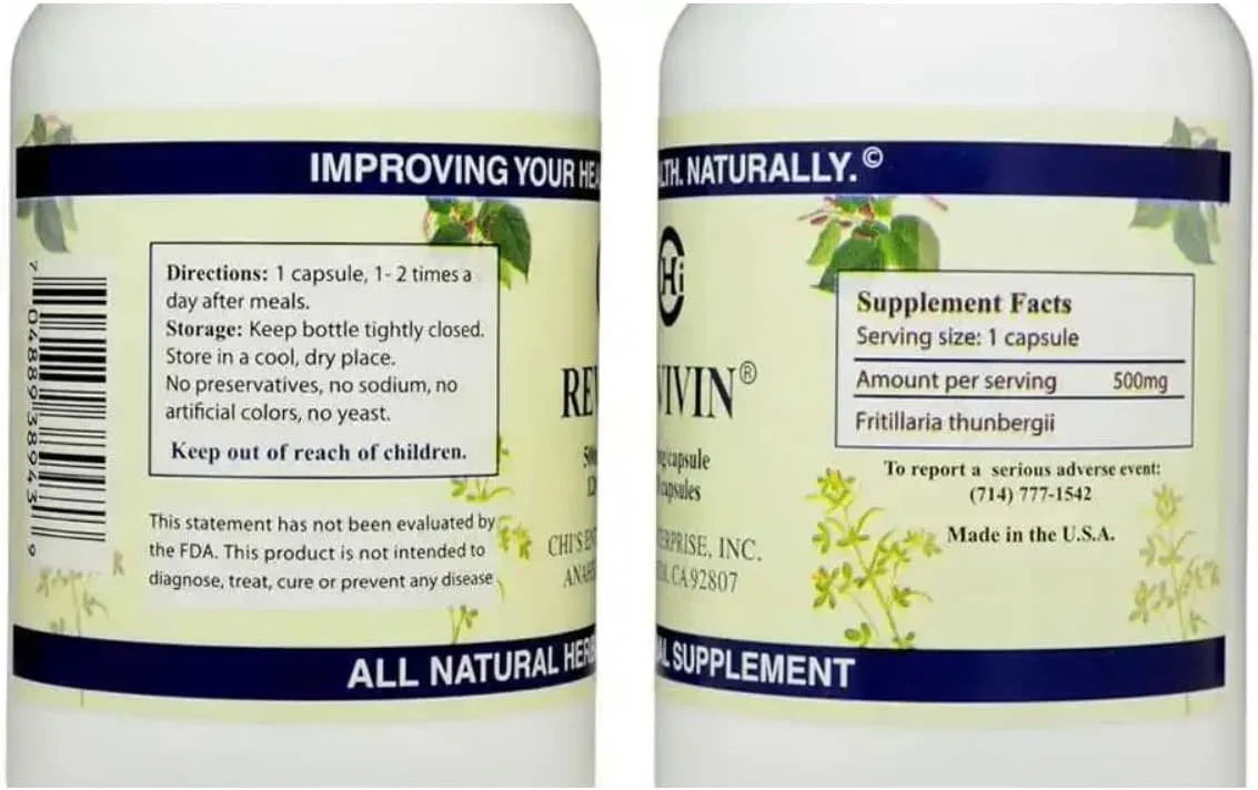 Revivin - 120 Capsules - Chi's Enterprise is a dietary supplement product. Each bottle contains 120 capsules, meant to be consumed orally. This product is part of the Chi's Enterprise line, which is recognized for its commitment to natural health and wellness products. Revivin is made from a proprietary blend of organic or wild-crafted herbs, based on Dr. Chi’s formulas.