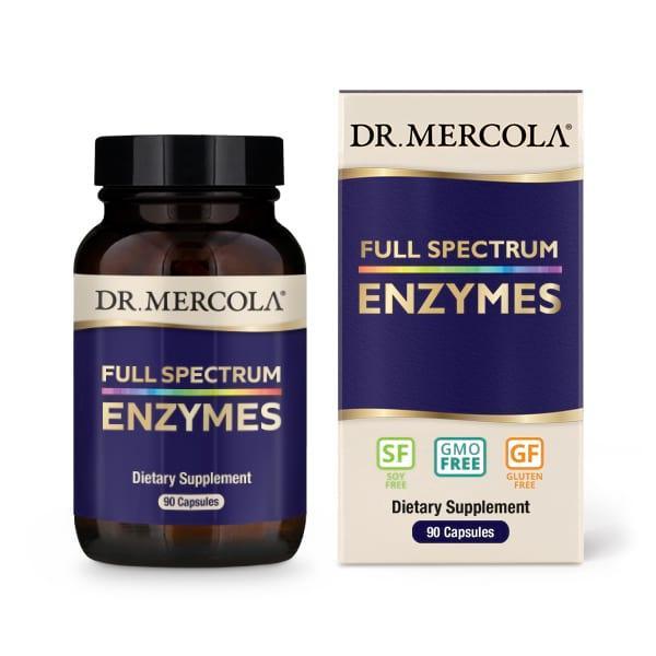 Full Spectrum Enzymes is a product from Dr Mercola that comes in a pack of 90 capsules. Its primary purpose is to support the body's ability to break down food into nutrients. The capsules contain a blend of different enzymes, which aid in the digestion of proteins, fats, carbohydrates, sugars, and fibers. These enzymes make it easier for the body to absorb the nutrients it needs.