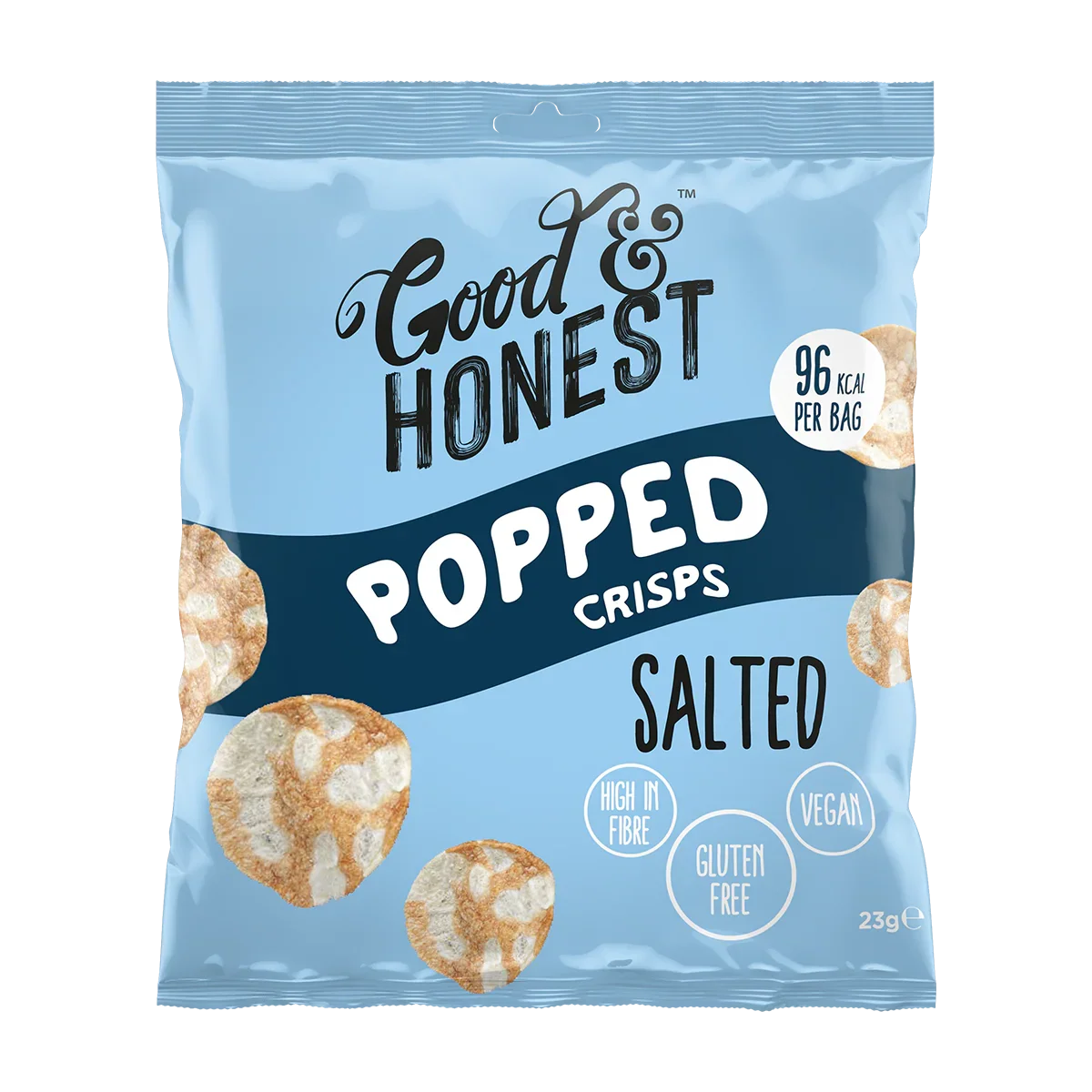 Good & Honest Popped Crisps 24x23g by Good & Honest are a nutritious snack option designed for health-conscious consumers seeking a balanced diet. These crisps are made using a unique popping process that retains the natural goodness of the ingredients while ensuring a light and crispy texture. Each 23g pack is crafted with high-quality potatoes and seasoned with natural flavours, providing a satisfying crunch without the excess oil found in traditional fried crisps.