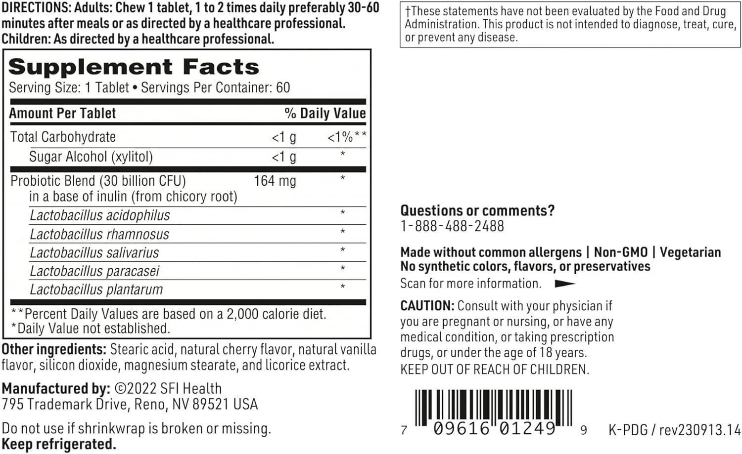 This cherry-berry flavored supplement is hypoallergenic and made from purely non-GMO ingredients. It is free from the common allergens - gluten and dairy. The supplement is also devoid of artificial colors, flavors, or preservatives, ensuring a natural approach to better gut health.