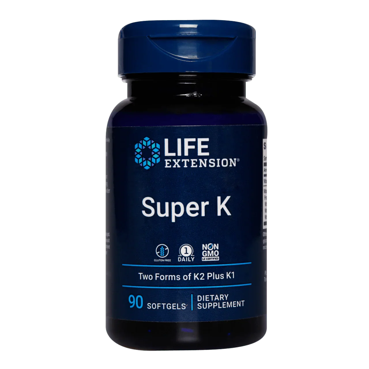 Super K is a health supplement produced by Life Extension. This product contains Vitamin K2 as its primary ingredient and comes in a bottle with 90 soft gel capsules. Each soft gel capsule contains two forms of Vitamin K2, Menoquinone-4 (MK-4) and Menoquinone-7 (MK-7), constituting an advanced K2 complex. MK-4 and MK-7 are bioactive forms of Vitamin K2 which contribute to bone health, cardiovascular health, and calcium metabolism.