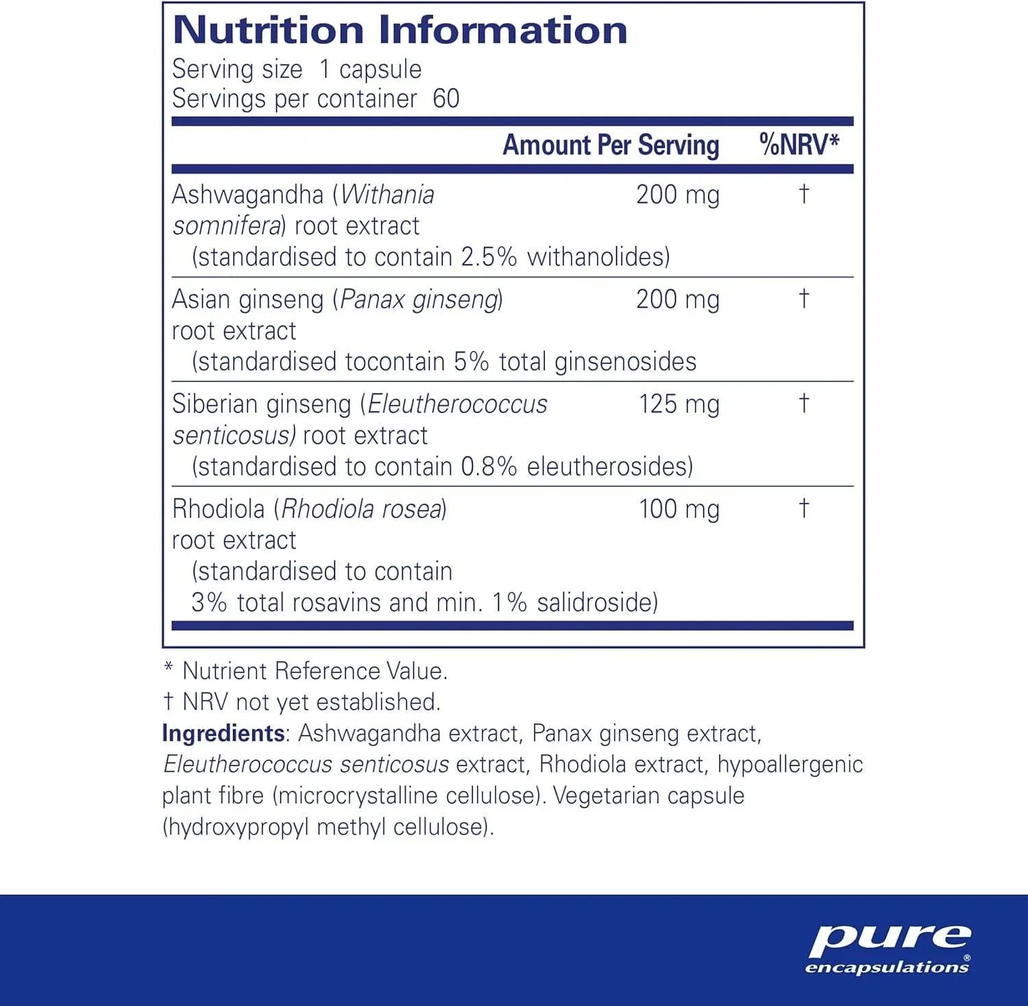 Ashwagandha Xtra aligns with Pure Encapsulations' standards for ingredient quality and manufacturing integrity. However, it is advised to consult with a healthcare provider before adding any new supplement to your regimen, particularly if you are pregnant, nursing, have underlying health conditions, or are taking medication. This product is intended to complement a balanced diet and healthy lifestyle, and is not designed to diagnose, treat, cure, or prevent any disease. Keep out of reach of children and store in a cool, dry place.