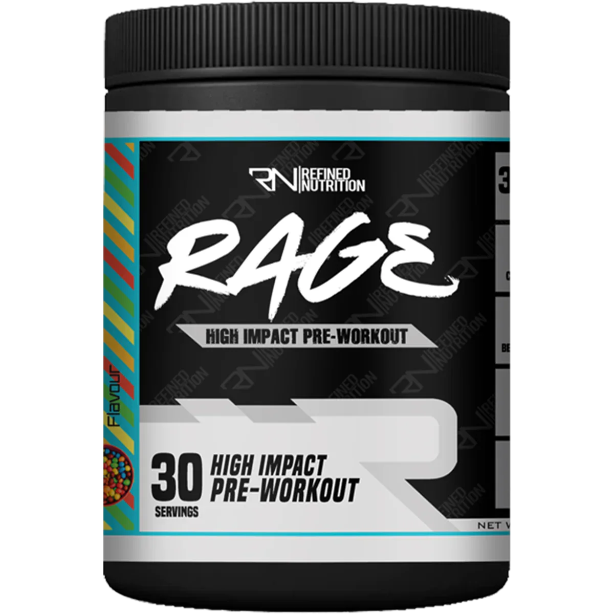 Refined Nutrition RAGE 300g Sour Rainbow Candy is a premium nutritional supplement designed to enhance workout performance and support muscle recovery. This expertly formulated product by Refined Nutrition features key active ingredients such as Beta-Alanine, L-Citrulline, and Creatine Monohydrate, which are known for their ability to boost endurance and strength during intense physical activity.