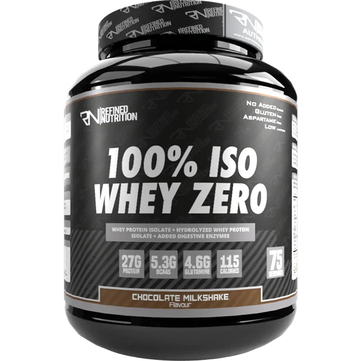 Refined Nutrition's Refined 100% Iso Whey Zero 2.27kg Chocolate Milkshake is a premium nutritional supplement designed for health-conscious individuals seeking to enhance their protein intake. This product features high-quality whey protein isolate as its main active ingredient, providing a clean and efficient source of protein to support muscle growth and recovery. With zero added sugars and low fat content, it caters to those who are mindful of their dietary intake while still enjoying a rich chocolate milkshake flavour.