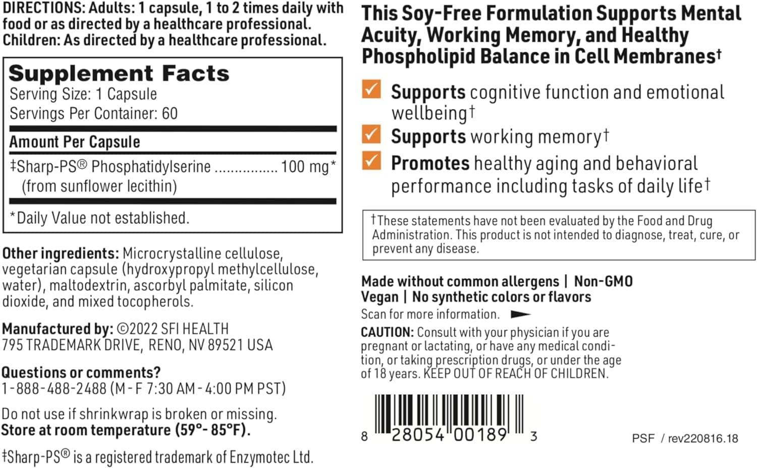 SeraBella 60 Caps (formerly Phosphatidyl Serine SF) - Klaire Labs/SFI Health