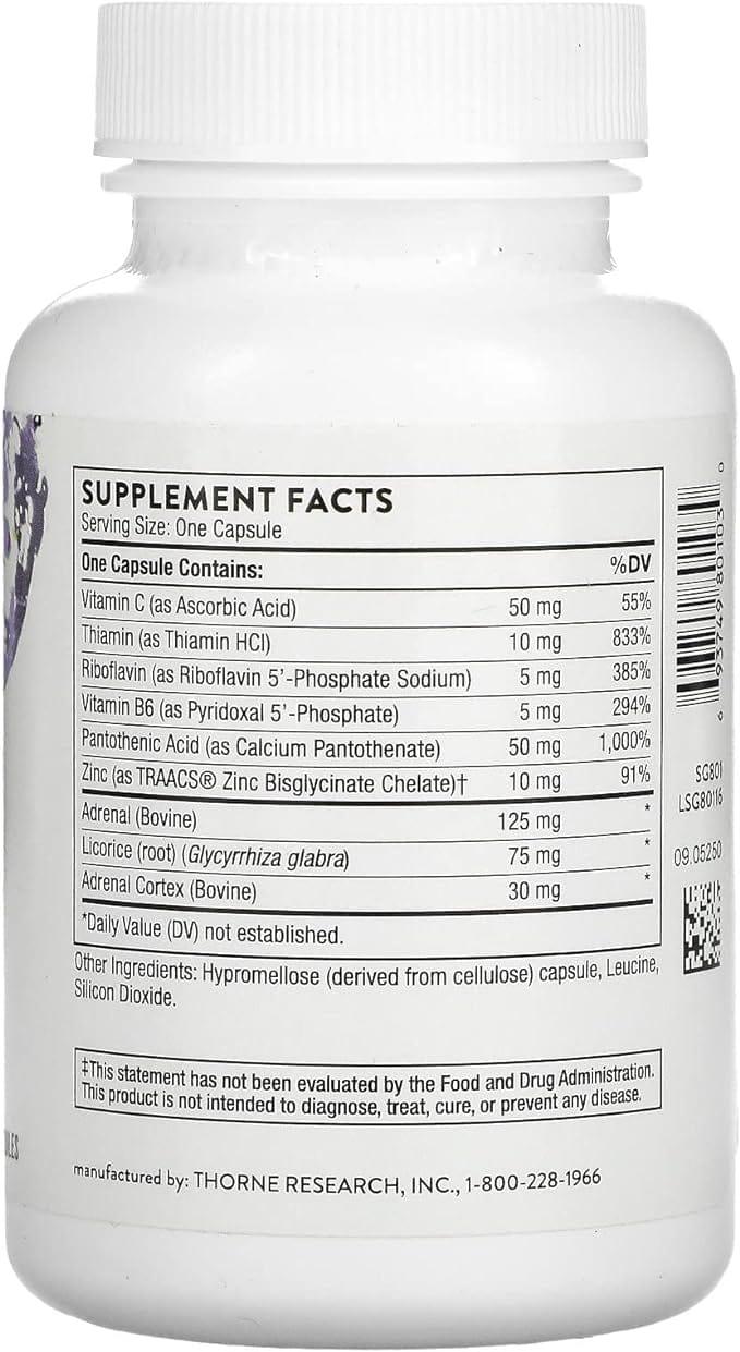 Thorne suggests taking 1-2 capsules daily or as recommended by your health professional. This product is recommended for individuals seeking adrenal support through stress challenges. It's important to note that each bottle contains 60 capsules and it's not meant to treat or cure any disease. It’s always recommended to consult healthcare professionals before starting any new supplement intake. Thorne is a company that has a reputation for purity and rigorous product testing, prioritizing the quality and safety of its supplements.