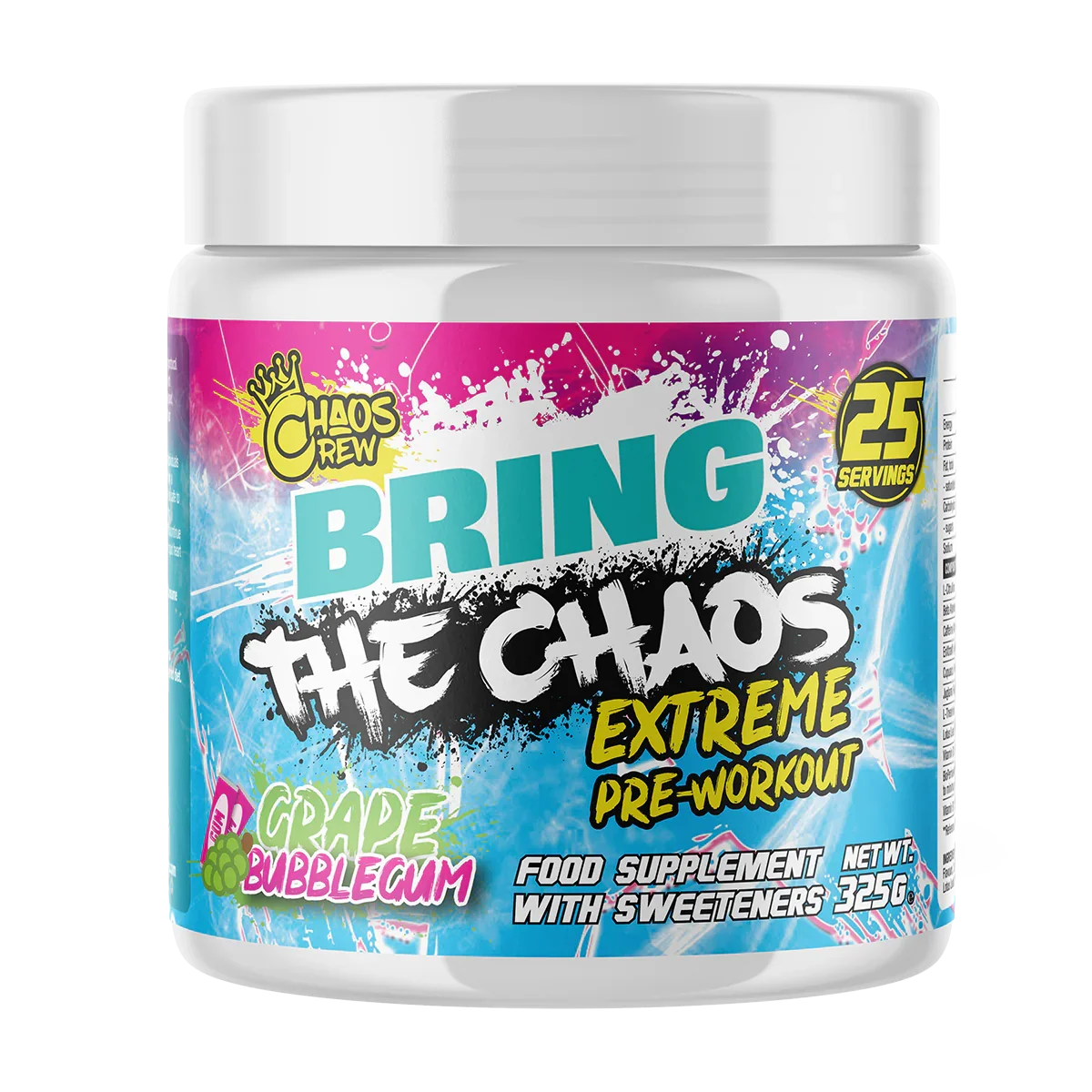 Chaos Crew Bring The Chaos v2 325g Grape Bubble Gum is a premium nutritional supplement designed to enhance workout performance and energy levels. Formulated by Chaos Crew, this pre-workout powder features a potent blend of active ingredients, including Beta-Alanine, L-Citrulline, and Caffeine Anhydrous. These components work synergistically to support increased endurance, focus, and strength during intense training sessions.