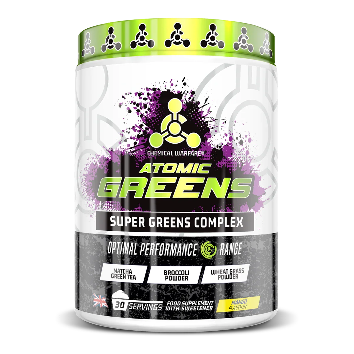 Chemical Warfare Atomic Greens 450g Mango is a premium nutritional supplement designed to support overall health and wellness. This product combines a potent blend of superfoods, vitamins, and minerals to provide a comprehensive source of essential nutrients. The main active ingredients include spirulina, chlorella, and wheatgrass, known for their high antioxidant content and ability to support immune function.