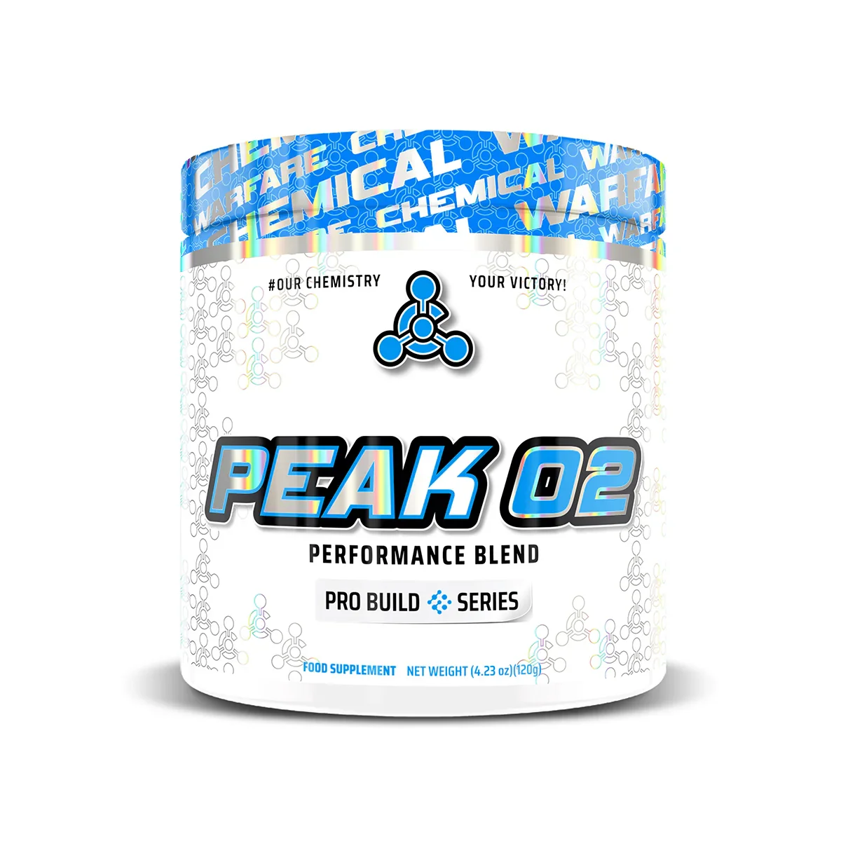 Chemical Warfare Peak O2 120g is a premium nutritional supplement designed to enhance athletic performance and endurance. Manufactured by Chemical Warfare, this product features the main active ingredient, PeakO2, a scientifically formulated blend of six adaptogenic mushrooms. These mushrooms, including Cordyceps and Reishi, are known for their ability to improve oxygen uptake and increase stamina during intense physical activities.