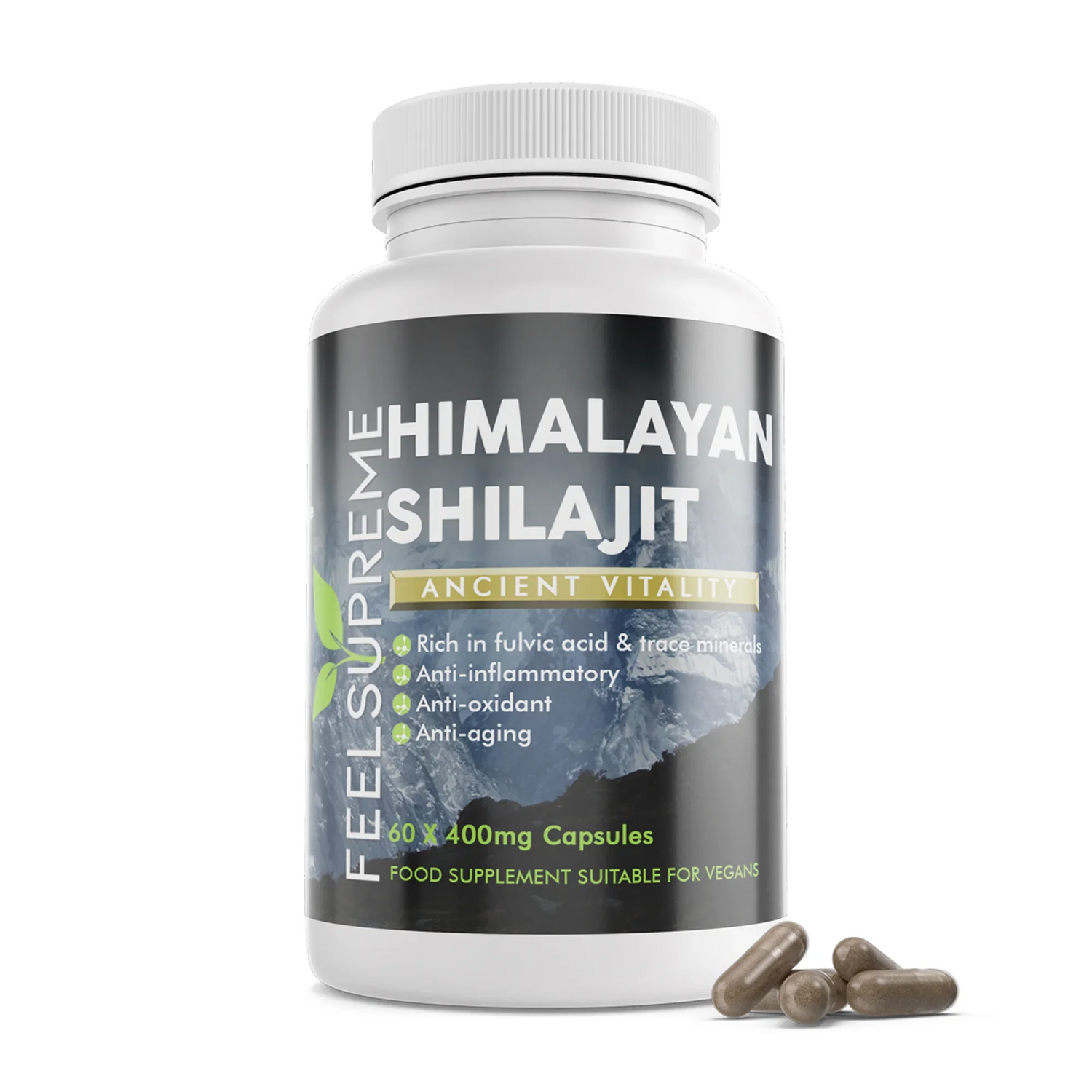 Feel Supreme Himalayan Shilajit 60 Veg Caps is a premium nutritional supplement designed to support overall health and vitality. Produced by Feel Supreme, this product features pure Himalayan Shilajit as its main active ingredient, known for its rich mineral content and potential health benefits. Shilajit, a natural substance found in the mountainous regions of the Himalayas, is renowned for its ability to enhance energy levels and promote a sense of well-being.