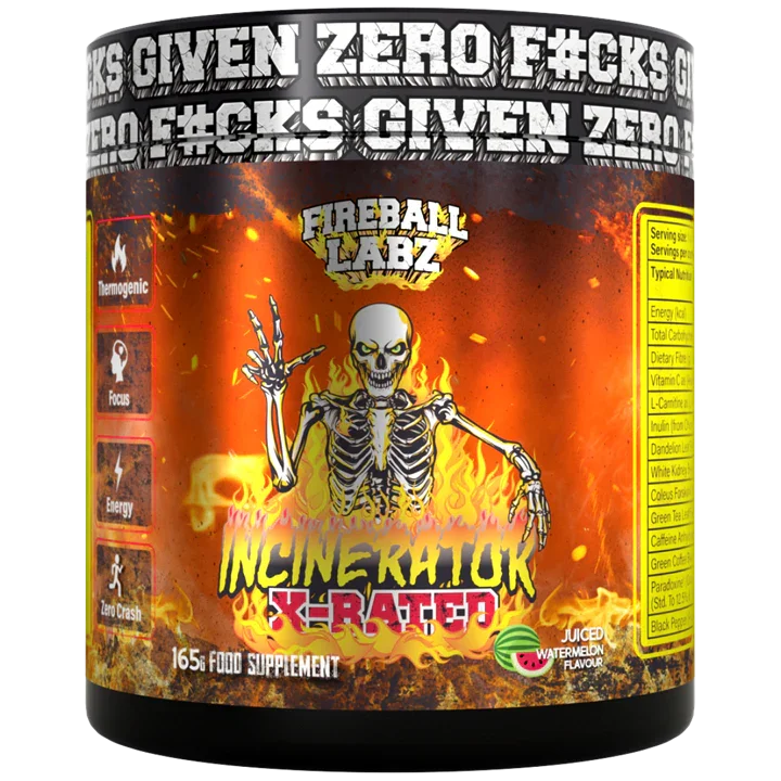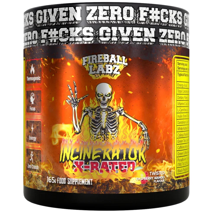 Fireball Labz Incinerator X-Rated 165g is a premium nutritional supplement designed to support your fitness goals. This potent formula by Fireball Labz features key active ingredients such as caffeine, L-carnitine, and green tea extract, which are known for their thermogenic properties. These components work synergistically to enhance metabolism and promote fat oxidation, making it an excellent choice for those looking to manage their weight effectively.