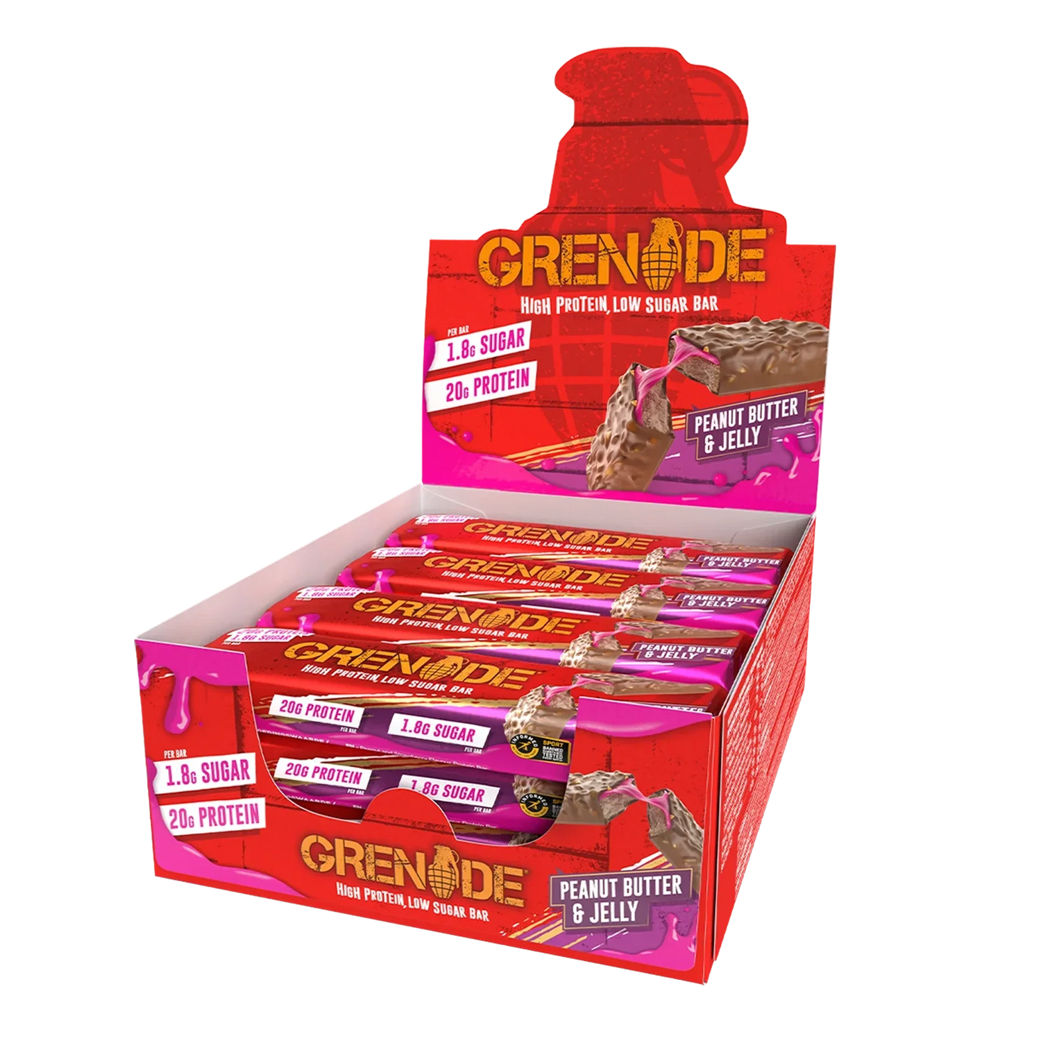 The Grenade Protein Bar 12x60g by Grenade is a high-protein snack designed for health-conscious individuals seeking a convenient way to support their fitness goals. Each bar is packed with 20g of protein, primarily derived from a blend of milk protein isolate and whey protein concentrate, making it an excellent choice for muscle recovery and growth. With a low sugar content of less than 2g per bar, these protein bars are suitable for those monitoring their sugar intake while maintaining a balanced diet.