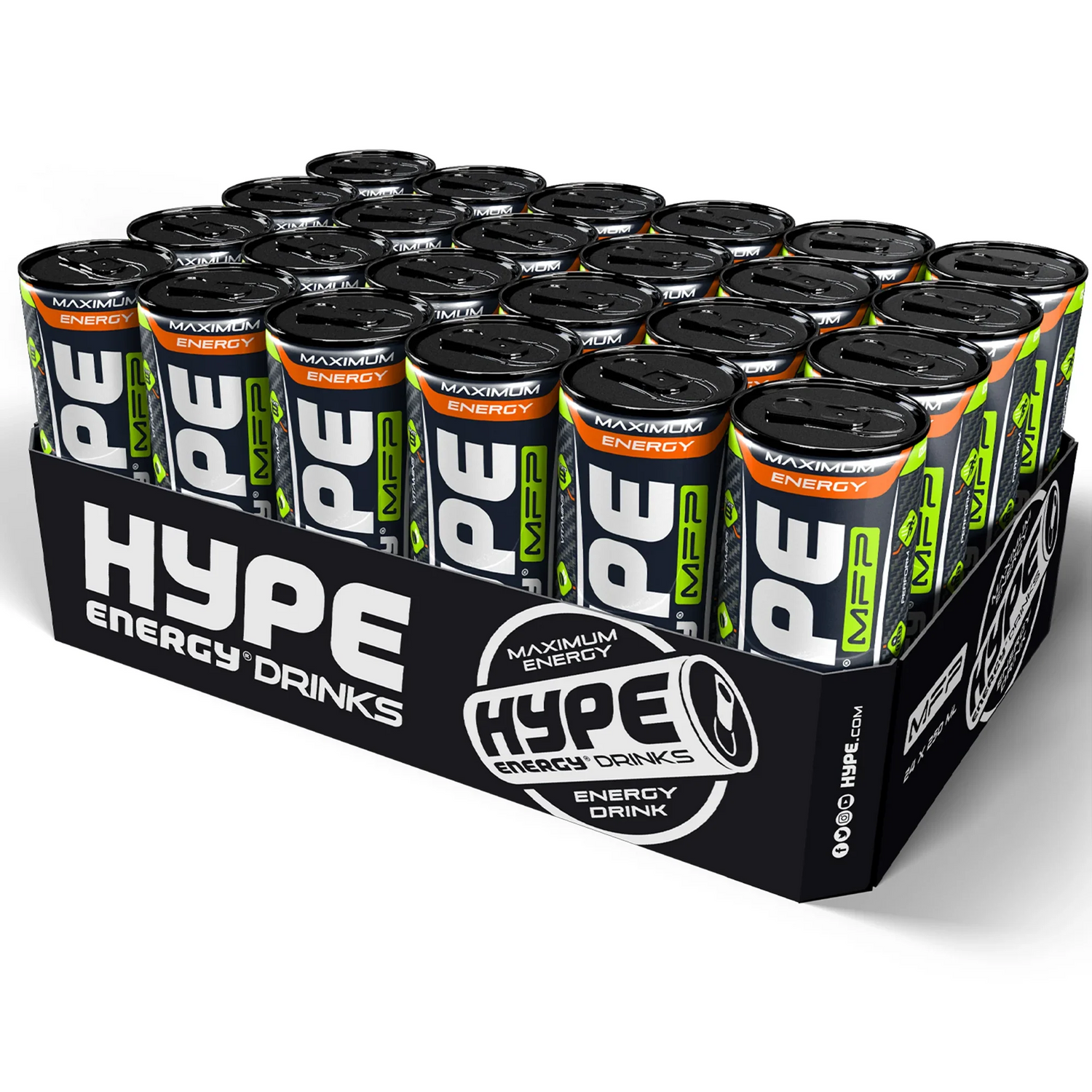 HYPE MFP Maxi Power 24x250ml Energy Drink by HYPE is a premium nutritional supplement designed to support active lifestyles and enhance energy levels. This energy drink features a potent blend of caffeine, taurine, and B vitamins, providing a reliable source of energy for those who need a boost during workouts or busy days. Each 250ml can is formulated to deliver sustained energy, helping you stay focused and alert without the crash associated with other energy drinks.