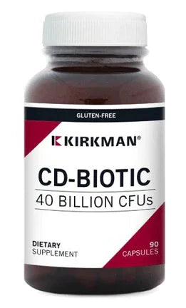 CD-Biotic, manufactured by Kirkman Labs, is a dietary supplement sold in a 90-capsule bottle. It is formulated with a blend of three probiotic strains designed to support gastrointestinal health. This unique combination includes Lactobacillus rhamnosus, Bifidobacterium bifidum and Lactobacillus acidophilus, all beneficial bacteria strains that can aid in digesting food, absorbing nutrients, and combating harmful bacteria.