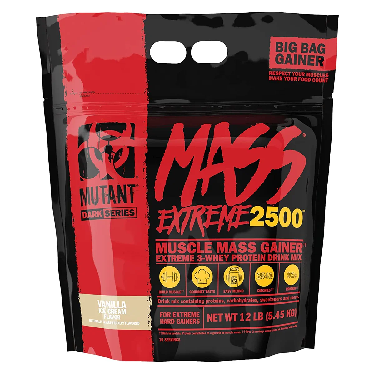 Mutant Mass Extreme 2500 5.45kg by Mutant is a high-calorie nutritional supplement designed for individuals seeking to increase muscle mass and overall body weight. This advanced formula features a blend of high-quality proteins, complex carbohydrates, and essential fats, making it an effective choice for those aiming to enhance their caloric intake. The primary active ingredients include a protein matrix of whey protein concentrate, milk protein isolate, and micellar casein, which work together to support muscle growth and recovery.
