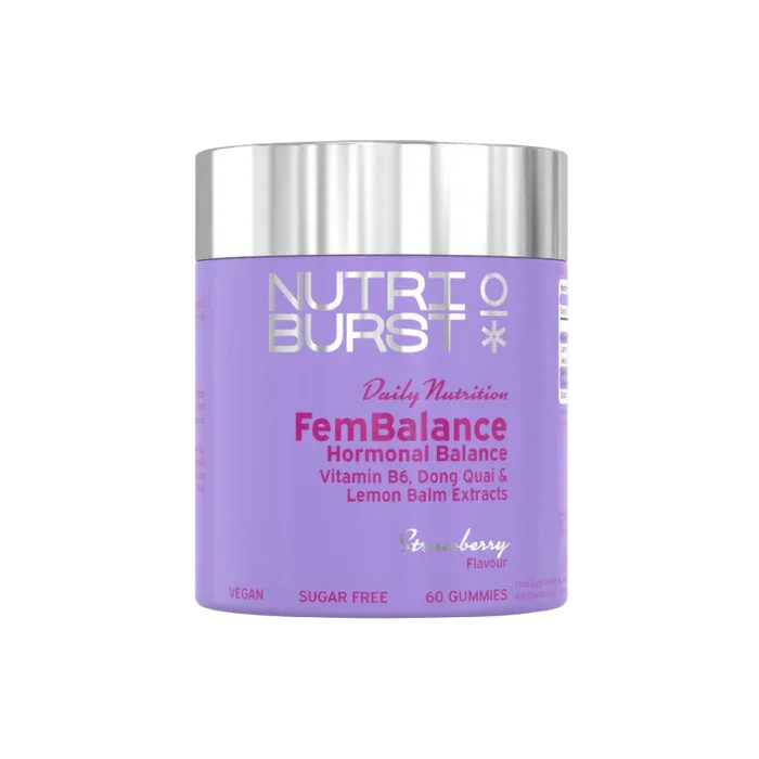 Nutriburst Fembalance 60 Gummies Strawberry by Nutriburst is a nutritional supplement designed to support women's health and well-being. These delicious strawberry-flavoured gummies are formulated with key active ingredients, including folic acid, biotin, and vitamin D, to help maintain hormonal balance and overall vitality. Each gummy is crafted to provide essential nutrients that contribute to the normal function of the immune system and support energy-yielding metabolism.
