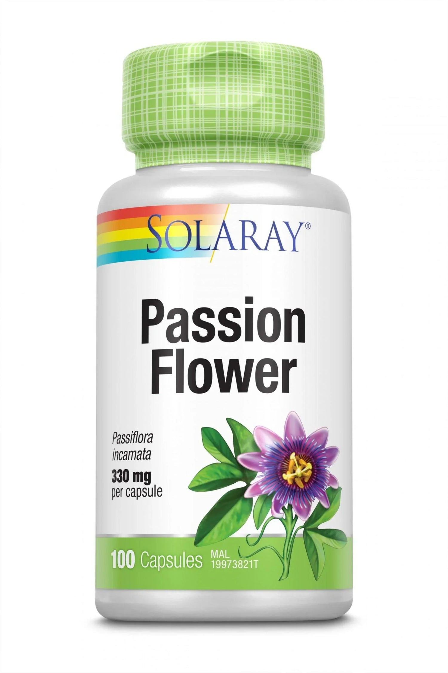 Passion Flower 330mg, 100 Capsules by Solaray is a dietary supplement designed to support the nervous system and promote relaxation. It is formulated with 330mg of passion flower (Passiflora incarnata), a perennial climbing vine known for its various health benefits, mainly its calming effects.