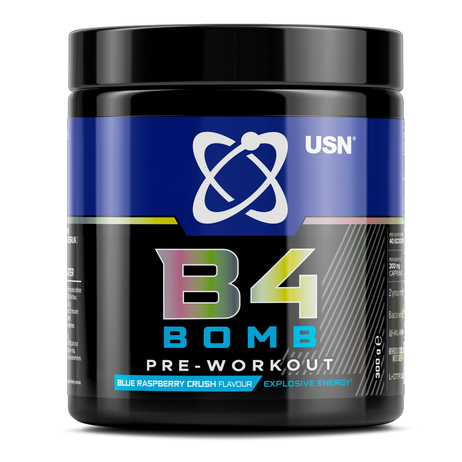 USN B4 Bomb by USN is a pre-workout nutritional supplement designed to enhance your exercise performance. Formulated with key active ingredients such as beta-alanine, caffeine, and creatine, this supplement aims to support increased energy, focus, and endurance during workouts. Beta-alanine is known for its role in buffering lactic acid, which can help delay muscle fatigue, allowing you to train harder and longer. Caffeine, a well-researched stimulant, contributes to improved alertness and concentration, making it easier to stay focused on your fitness goals. Creatine, a staple in many athletes' regimens, supports muscle strength and power, aiding in the development of lean muscle mass.