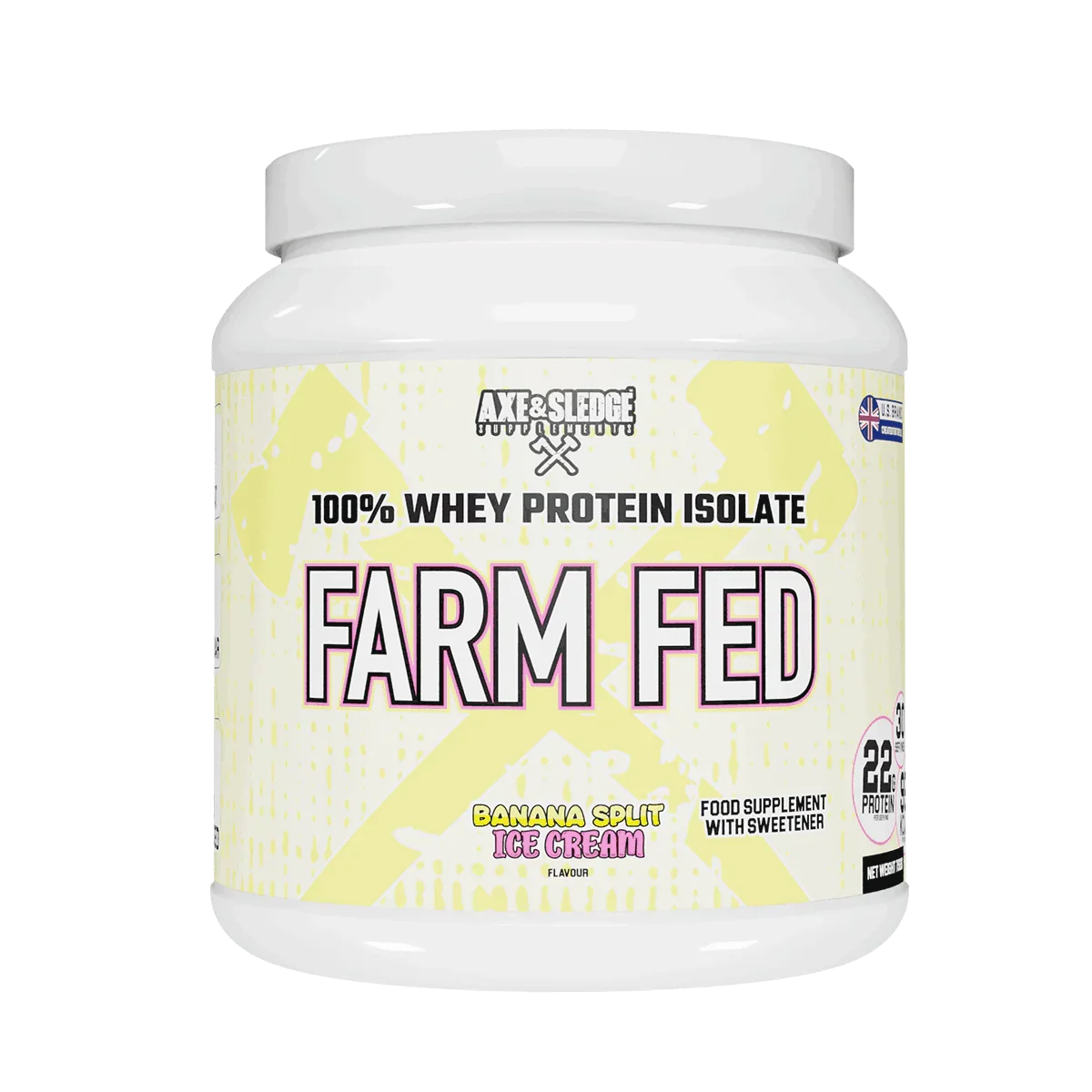 Axe & Sledge Supplements Farm Fed is a premium nutritional supplement designed for health-conscious individuals seeking a high-quality protein source. This product features grass-fed whey protein isolate as its main active ingredient, ensuring a clean and natural protein intake. Farm Fed is crafted to support muscle recovery and growth, making it an excellent choice for those who engage in regular physical activity or require additional protein in their diet.