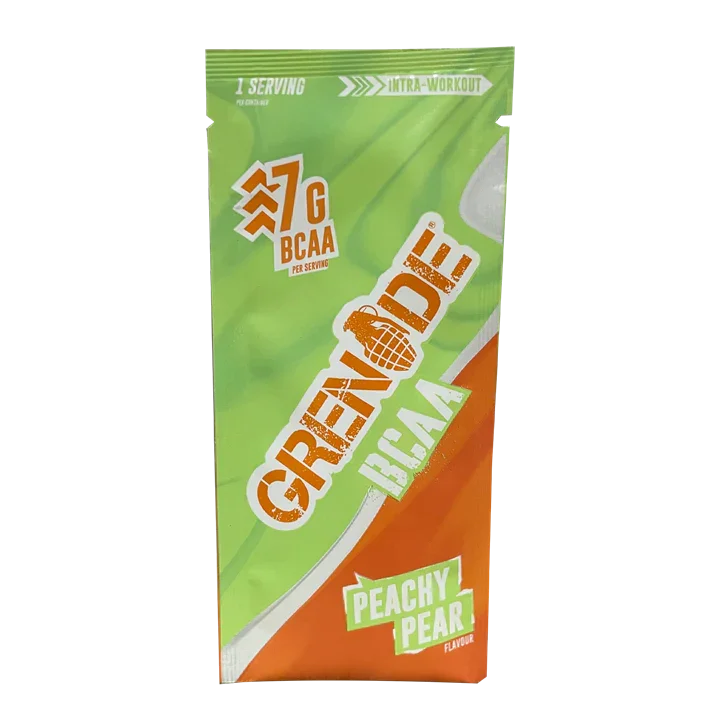 Incorporating Grenade BCAA Sachet 13g Peachy Pear into your daily regimen can help support your fitness goals by aiding muscle recovery and reducing fatigue. Trust Grenade's commitment to quality and performance, and experience the benefits of BCAAs in a delicious, easy-to-use format.
