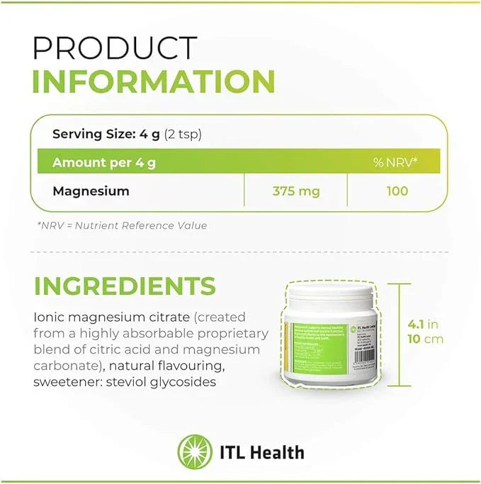 MAG365 is a food supplement containing 150g of high-quality, highly-absorbable ionic magnesium citrate in Exotic Lemon flavor. Produced by a proprietary process, it is designed to provide optimal absorption of magnesium into your system. This form of magnesium is derived from a process involving the combination of Magnesium Carbonate and Citric Acid, which increases the bioavailability of magnesium in the body.