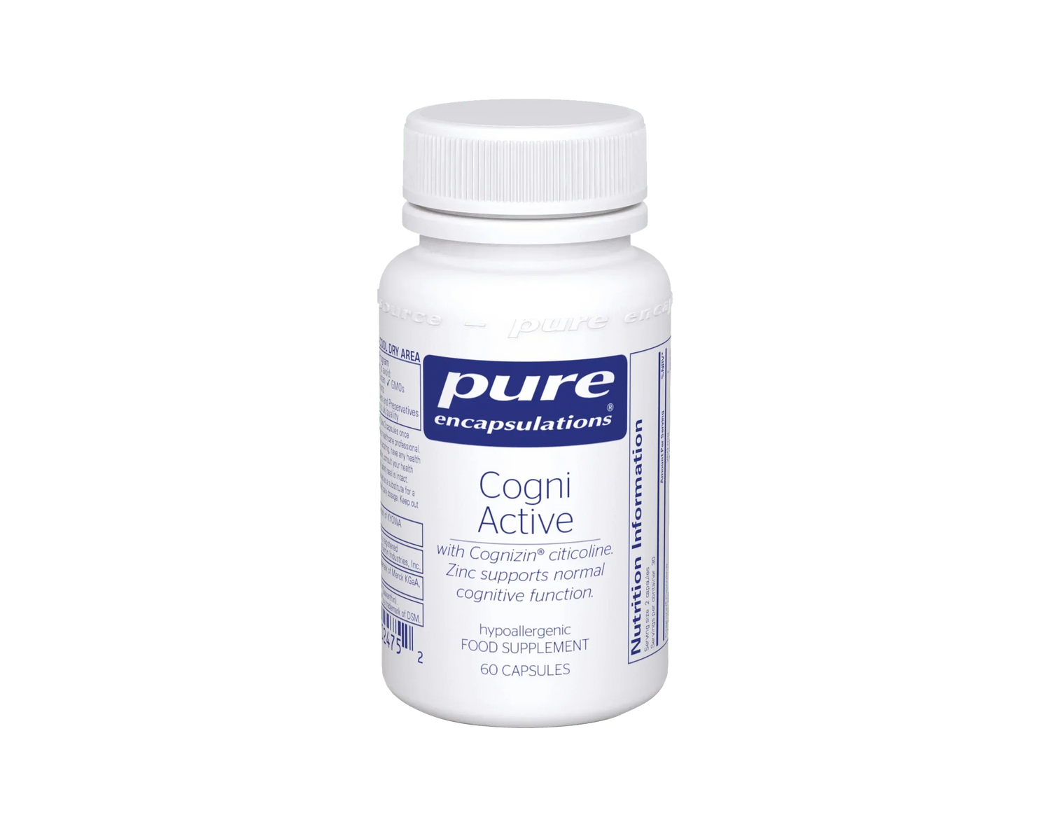 Cogni Active is a dietary supplement product from Pure Encapsulations. It comes in a bottle containing 60 capsules. This supplement is designed specifically for cognitive health and provides assistance in areas such as focus, memory, and mental energy. It combines a variety of ingredients, all unique in nature and with proven efficiency in supporting cognitive actions.