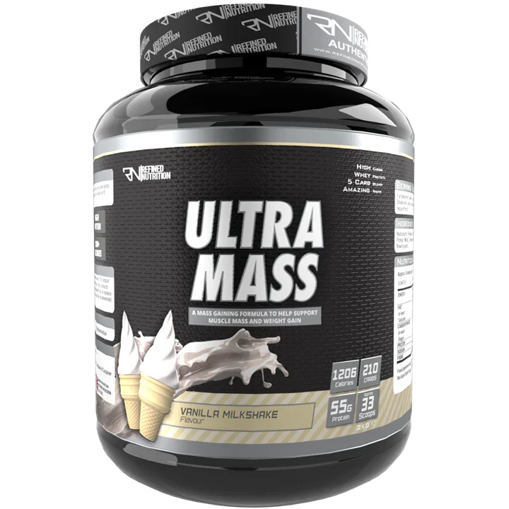 Refined Nutrition Ultra Mass 2kg is a premium nutritional supplement designed to support muscle growth and recovery. This high-quality product from Refined Nutrition features a potent blend of whey protein concentrate, creatine monohydrate, and branched-chain amino acids (BCAAs), making it an excellent choice for athletes and fitness enthusiasts aiming to enhance their performance and achieve their fitness goals.