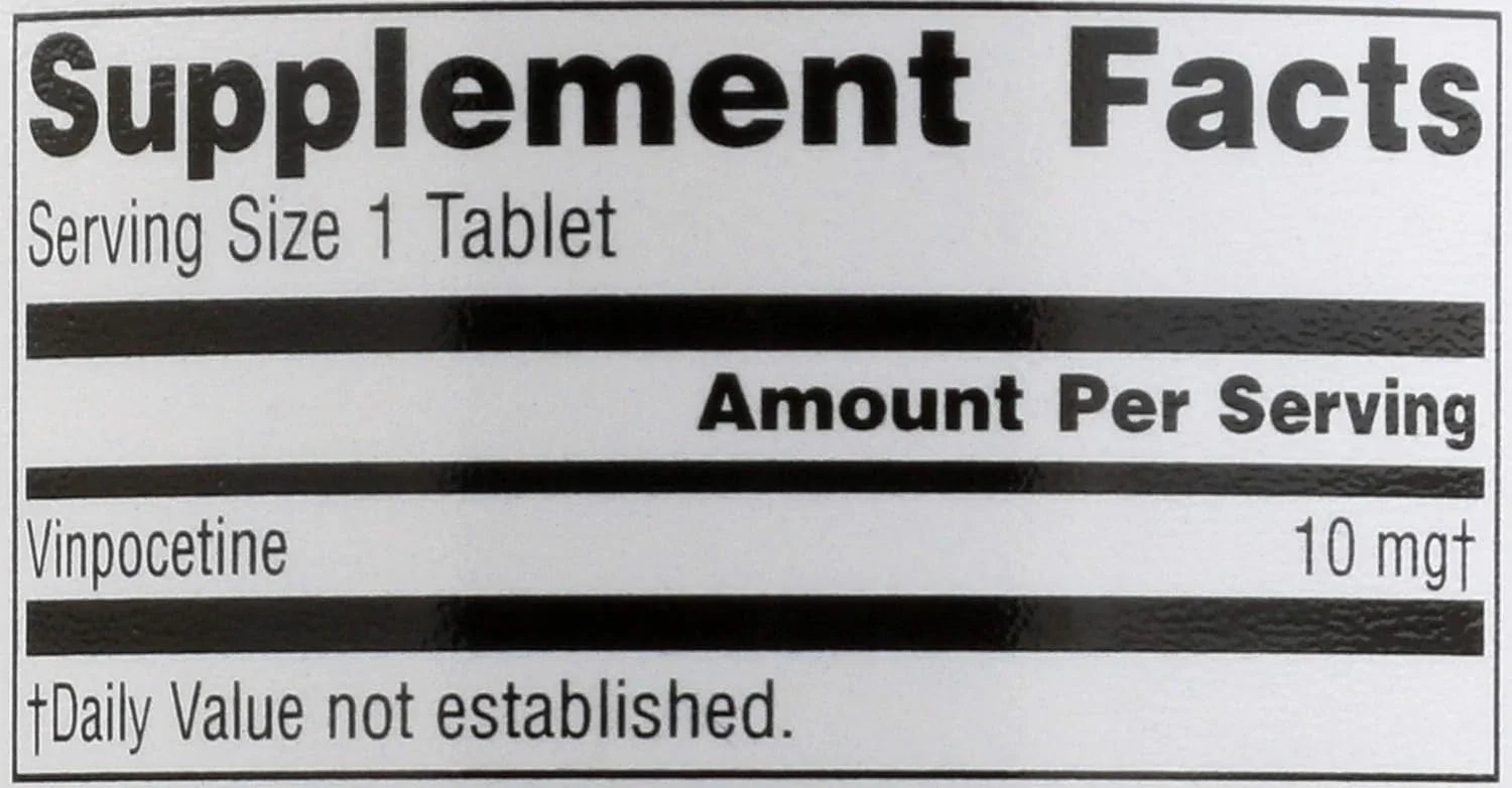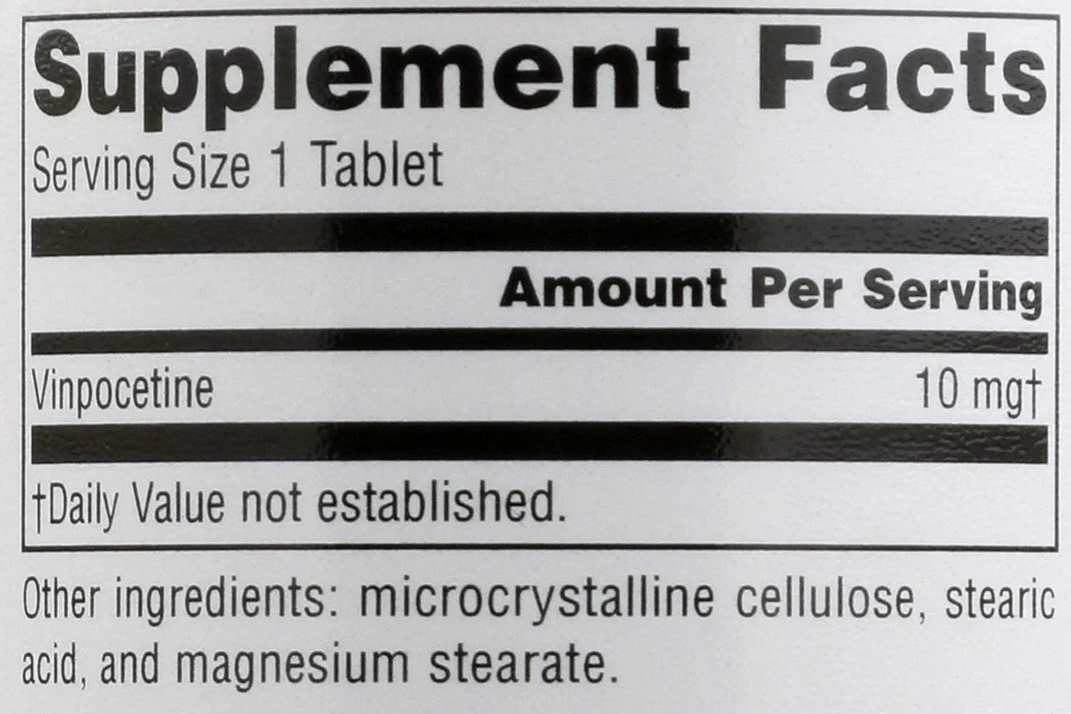 Vinpocetine (10mg) - 120 Tabs - Source Naturals is a dietary supplement designed to enhance cognitive performance. The main active ingredient is Vinpocetine, a synthetic derivative of the Vinca minor plant, known to improve blood flow to the brain. This supplement contains 10mg of Vinpocetine per tablet.
