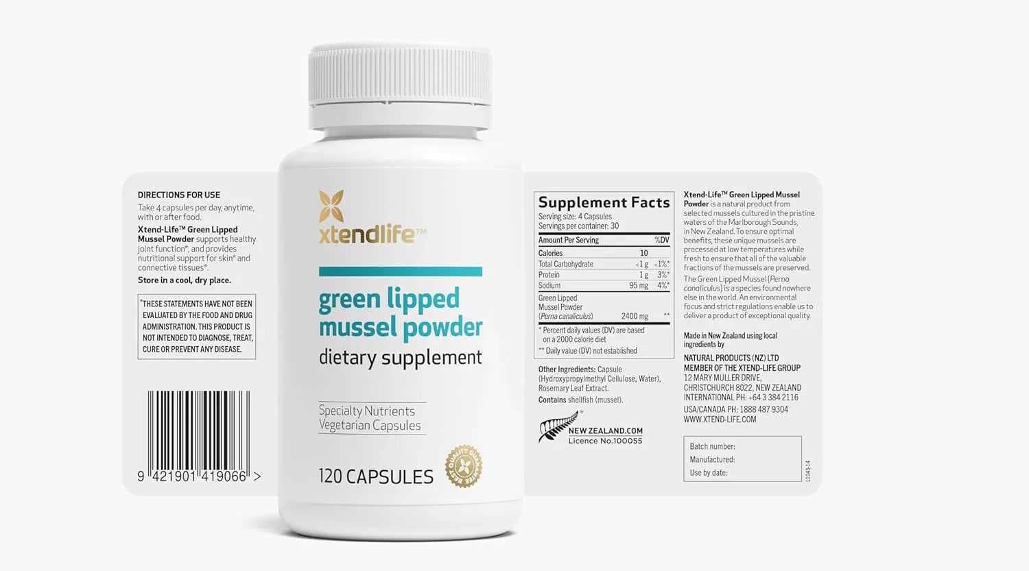 Xtend-Life emphasizes quality and sustainability in sourcing their green lipped mussels, ensuring that the product adheres to rigorous standards. This supplement aims to provide natural, effective support for maintaining joint health and overall well-being. The 120-capsule bottle provides a one-month supply when used as directed.